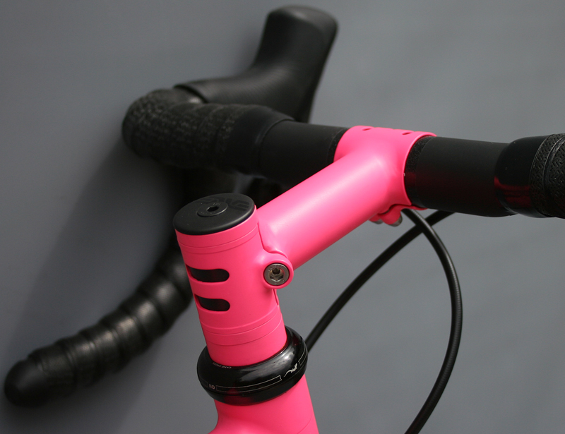 Nicole wanted a well fitting, nicely riding, comfortable and fast road bike – which is what all riders want I think! She worked with a fitter locally, providing me with the numbers to design around. Building for smaller, lightweight riders is one of my favorite things as these riders are generally so underserved by production bikes (which have to be built sturdy and stiff as they don’t know who will be riding the bike). So I could reduce the tubing sizes to provide the right elements of stiffness and compliance to suit Nicole’s stature. The 1″ seatmast is machined to tune the stiffness, and paired with a dropped toptube to create a degree of cantilevered flex at the saddle. Small diameter stays help keep the weight low.