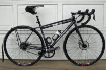 2012 update: Here’s a great shot of the bike with it’s intended layer of dirt from zero maintenance through the Oregon winter! Three years on and this is my go-to bike all winter for training, commuting and hauling supplies. To this end it got a couple of additions last summer with a rear light integrated into the seatmast, and a brazed on trailer hitch on the chainstay. And a slight change of color to black diamond with the necessary repaint! I just swapped out the belt for the Center Track version, but otherwise nothing much has been done in 7000 miles – one new set of tires and one new gear cable is all I think. I’m still on the first set of brake pads!